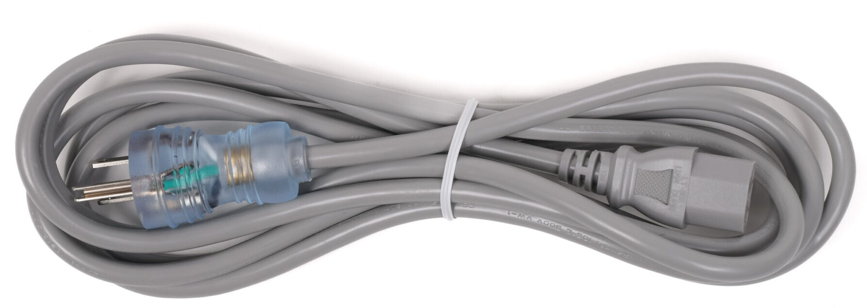 CL6010810′ Gray Hospital Grade Power Cord 18 AWG – NEMA 5-15P (clear) to IEC320-C13