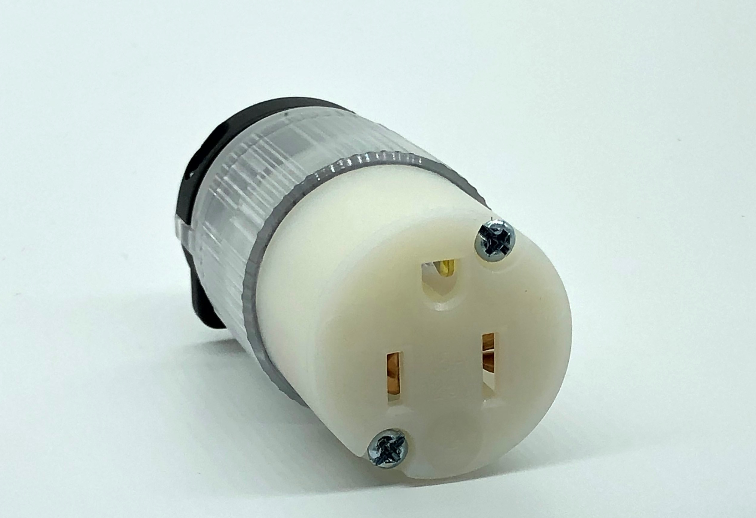Webber’s Lighted NEMA 5-15R Neon Illuminated Attachable Replacement Connector comes with easy-to-follow Installation Instructions. This device features Isolated see-thru Wiring Chambers which helps to prevent arcing & flashover during installation of wires for a solid connection. There is an adjustable rear Cord Clamp for attaching a variety of wire sizes (accepts 18~12 AWG). This Grounded 3 Wire, 15 Amp/125 Volt Connector is designed for Commercial and Residential uses. This Wiring Device features high quality, durable nylon construction material. All our Wiring Devices meet UL, cUL and RoHS standards.
