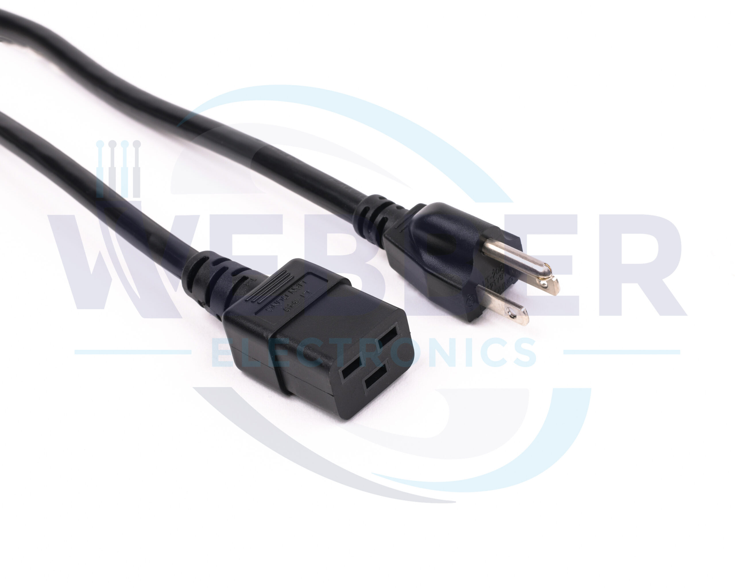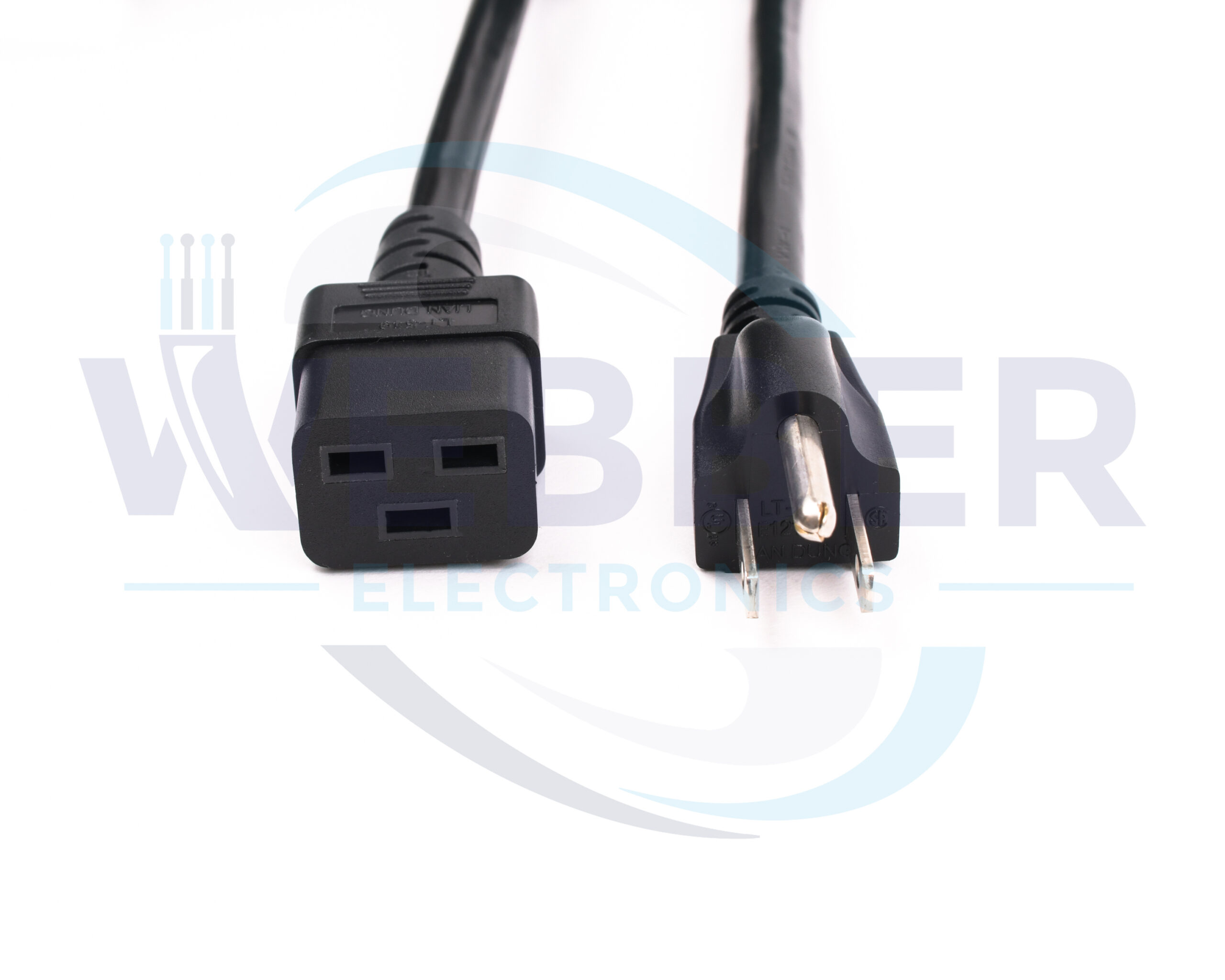 Our NEMA 5-15P to C19 North American Power Cords are universal and commonly used to power most electrical devices. Webber Electronics’ CL60175 has a fully molded IEC320-C19 female connector that connects directly into your device and the male NEMA 5-15P plugs directly into any standard wall outlet. This 3-conductor 8’0″ 14AWG SJT Black Power Cord is fully UL approved and complies with all RoHS requirements.