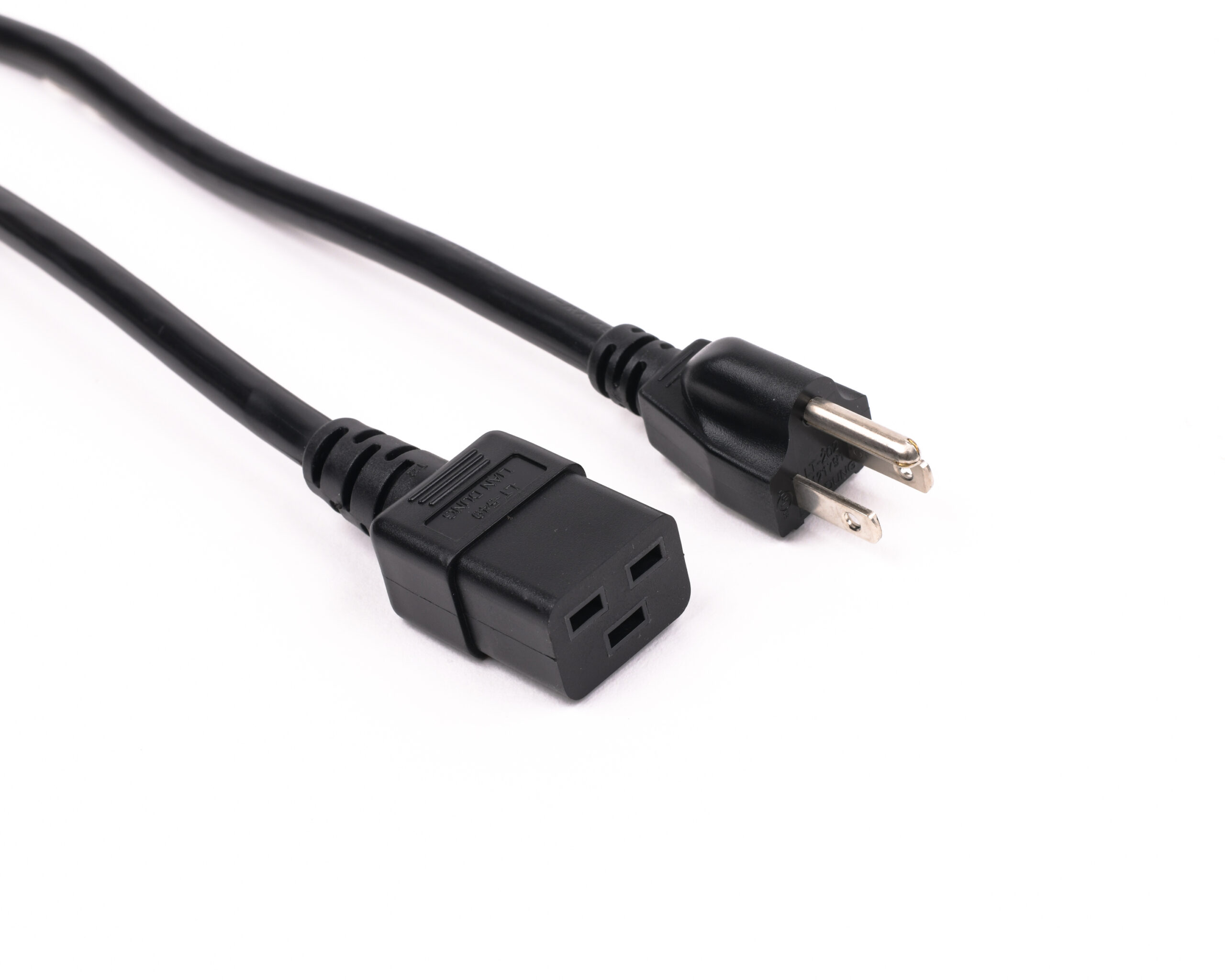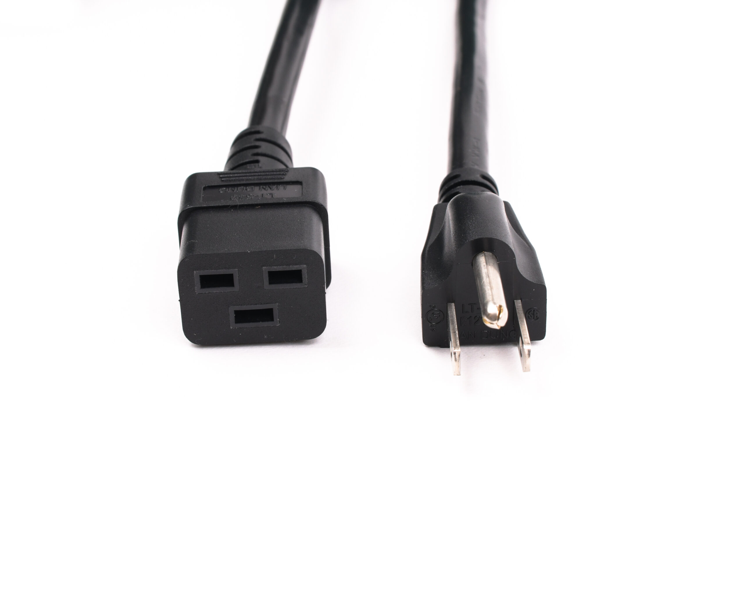Our NEMA 5-15P to C19 North American Power Cords are universal and commonly used to power most electrical devices. Webber Electronics’ CL60175 has a fully molded IEC320-C19 female connector that connects directly into your device and the male NEMA 5-15P plugs directly into any standard wall outlet. This 3-conductor 8’0″ 14AWG SJT Black Power Cord is fully UL approved and complies with all RoHS requirements.