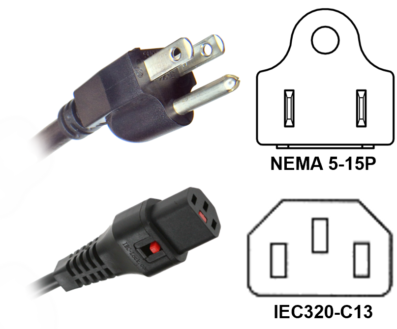 Our NEMA 5-15P to a Wired Locking C13 North American Power Cords are universal and commonly used to power most electrical devices. Webber Electronics’ CL60020-LOCK has a fully molded Locking IEC320-C13 female connector that connects directly into your device and the male NEMA 5-15P plugs directly into any standard wall outlet. This 3-conductor 6’0″ 18AWG SVT Black Power Cord is fully UL approved and complies with all RoHS requirements.