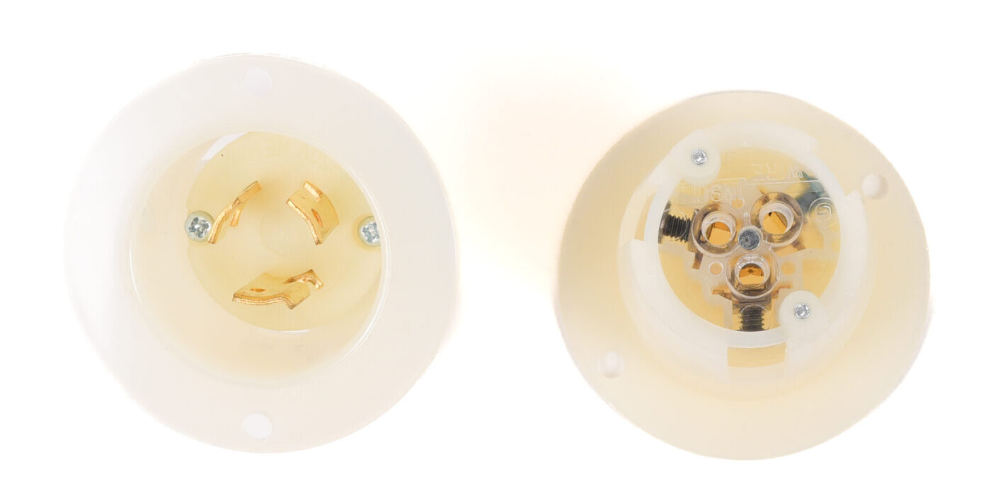 Webber’s Flanged Inlets & Outlets are available to fit a wide range of Straight Blade & Twist-Lock Plugs and Connectors NEMA configurations. The 15 Amp versions are made of durable Nylon material & the 20 Amp and higher are made of a Poly-Carbonate & Nylon material. These products are available in 15 Amp to 30 Amp & 125 Volt to 250 Volt options. These devices feature Isolated see-thru Wiring Chambers which helps prevent arcing & flashover during installation of wires for a solid connection. You can find detailed assembly instructions on the Document tab of each specific product listing. All our wiring Devices meet UL. cUL and RoHS standards.
